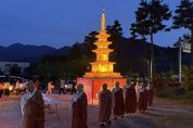 (포탈뉴스통신) 산청불교사암연합회는 지난 18일 산청IC 일원에서 불기 2570년 부처님 오신 날 기념 점등식을 개최했다고 20일 밝혔다. 행사는 삼귀의와 반야심경 봉독을 시작으로 점등 발원문 독송, 대안스님의 봉축사, 점등식, 탑돌이, 사홍서원 등이 진행됐다. 특히 점등에서는 ‘불·법·승’ 구호에 맞춰 봉축탑에 환한 불빛이 들어와 불자들이 일제히 박수를 보냈다. 또 탑돌이에서는 석가모니불 정근을 하며 탑을 돌아 개인의 안녕과 함께 산청군의 발전과 인류의 평화를 염원했다. 산청불교사암연합회는 이번 점등식을 시작으로 부처님 오신 날의 의미를 되새기는 봉축 기간을 이어갈 예정이다. 대안스님(산청불교사암연합회장)은 “점등의 불빛이 우리 사회의 어두운 곳을 환히 비추고 군민 모두의 마음에 다시금 희망이 피어나는 계기가 되길 바란다”며 “부처님의 자비광명이 온 누리에 충만하길 기원한다”고 말했다. [뉴스출처 : 경상남도 산청군]