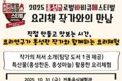 (포탈뉴스통신) 홍성군은 오는 10월 31일 홍주천년문화체험관 전통음식체험관에서 열리는 ‘요리책 작가와의 만남’ 프로그램 참가자를 9월 23일부터 모집한다고 밝혔다. 이번 행사는 2025 홍성글로벌바비큐페스티벌과 연계해 지역 특산물을 활용한 요리 체험과 작가와의 소통을 통해 독서문화 확산과 농·특산물 홍보를 함께 추진한다. 행사는 10월 31일 오전 10시부터 오후 4시 30분까지 총 3회 진행되며, 회차별 1시간 30분씩 운영된다. 모집 인원은 총 36팀으로, 회차당 12팀을 선착순으로 모집한다. 이번 프로그램은 요리연구가이자 요리책 작가인 홍성란(홍성군 홍보대사) 씨가 직접 진행한다. 작가의 저서 소개와 함께 홍성한돈·홍성마늘 등 지역 특산물을 활용한 요리를 함께 만들어보는 체험으로 구성된다. 체험 요리 메뉴는 ▲홍성한돈 카레불고기 샌드위치 ▲홍성마늘 대하 채소구이 샐러드로, 참가자들이 맛과 체험의 즐거움을 함께 누릴 수 있을 것으로 기대된다. 참가 신청은 9월 23일 오후 2시부터 광천공공도서관 홈페이지 로그인 후 신청할 수 있다. 신청은 개인 단위로 할 수 있으며, 가족 단위는