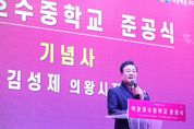 (포탈뉴스통신) 의왕시 백운밸리 지역에 신설된 백운호수중학교의 준공식이 24일 백운호수중학교 체육관에서 개최됐다. 의왕백운프로젝트금융투자(주)(의왕백운PFV(주)) 주최로 열린 이날 준공식에는 김성제 의왕시장, 임태희 경기도 교육감, 김학기 의왕시의회 의장과 도·시의원, 의왕백운피에프브이(주) 김양묵 대표이사, 의왕백운밸리에이엠시(주) 이성훈 대표이사 등 주요 내빈과 지역주민 400여 명이 참석해 자리를 빛냈다. 이번 준공식은 학교 설립을 위해 힘써 온 관계자와 지역 주민들이 한 자리에 모여 그동안의 결실을 함께 나누고 축하하는 뜻깊은 행사로 마련됐다. 의왕시 백운밸리 일대는 주거단지 조성과 함께 인구가 지속적으로 증가하고 있는 지역으로, 그간 중학교 부재에 따른 학생들의 원거리 통학 문제가 꾸준히 제기돼 왔다. 이에, 시는 ‘중학교 신설’이라는 지역 숙원사업 해결을 위해 다각적인 방안을 검토해 왔으며, 2023년 11월 의왕시·군포의왕교육지원청·의왕백운피에프브이(주) 간 3자 업무협약을 체결함으로써 학교 설립이 본격 추진됐다. 협약을 통해 시에서는 백운호수 초등학교 인접 유치원 부지를