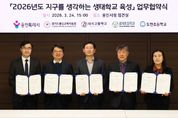 (포탈뉴스통신) 용인특례시는 24일 시청 접견실에서 용인교육지원청을 비롯해 3개 학교와 ‘지구를 생각하는 생태학교 육성사업’을 위한 협약을 맺었다. 이날 협약식에는 조영민 교육장과 올해 생태학교로 선정된 대지고 유동철 교장, 효자초 정계환 교장, 도현초 연승희 교장, 담당 교사들이 참석했다. 이들 기관은 협약에 따라 ▲학교별 맞춤형 생태교육 운영 지원 ▲교과·교육과정과 연계한 생태교육 프로그램 개발·자문 ▲생태학교 육성사업 성과평가 등을 위해 협력하기로 했다. 올해 4년 차를 맞이한 ‘지구를 생각하는 생태학교’ 사업은 전국 지자체 중 최초로 환경교육 전문 인력을 학교 현장에 배치, 이론 교육을 넘어 실천 중심의 생태전환교육을 하는 용인시의 핵심 환경교육 사업이다. 시는 2023년부터 해마다 공모를 통해 지역 내 학교를 선정해 왔다. 올해 선정된 3개 학교를 포함해 총 12개교가 생태학교 사업에 참여하고 있다. 올해 기준 용인 지역은 초·중·고 343학급, 학생 9149명이 생태교육에 참여하면서 현장 중심의 체계적인 환경교육으로 높은 평가를 받고 있다. 시는 축적된 노하우를