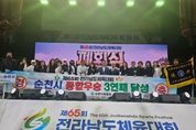(포탈뉴스통신) 순천시는 지난 10일부터 13일까지 4일간 구례군 일원에서 열린 제65회 전라남도체육대회에서 종합우승을 차지하며 3년 연속 종합우승의 쾌거를 달성했다. 전남 22개 시군 7,000여 명의 선수단이 참가한 이번 대회에 순천시는 23개 전 종목, 402명의 선수단이 참가해 그동안 갈고닦은 실력과 기량을 유감없이 발휘하며 종합 1위의 영예를 안았다. 종목별로는 배구, 소프트테니스, 족구, 바둑에서 1위를 축구, 복싱에서 2위를 골프, 농구, 검도, 씨름, 유도, 볼링에서 3위를 거두는 등 전 종목에서 고른 활약을 선보였다. 한편 대회 기간 중 8개 시·군 선수 및 관계자 3,000명 이상의 방문객이 지역 내에서 숙박과 식사, 주요 관광지를 방문하는 등 소비 활동을 한 것으로 분석된다. 이는 순천이 교통·숙박·먹거리 등 생활인프라가 잘 갖춰진 도시로, 경기 참가자뿐만 아니라 인근 지역 선수단의 추가 체류를 유도하며 소비 확대에 기여한 것으로 평가된다. 이에 따라 숙박·외식업 중심 직접 소비 및 연관 산업에 미치는 효과까지 총 경제유발효과는 약 23억 원 이상에 이르는 것으로 나