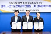 (포탈뉴스통신) 파주시는 30일 경기도경제과학진흥원, 한국토지주택공사 경기북부지역본부와 경과원 파주시 이전에 따른 엘에이치(LH) 공공임대주택 생활관 지원을 위한 업무협약을 체결했다고 밝혔다. 이번 협약은 경과원의 단계적 이전에 앞서 직원들에게 안정적인 정주환경을 제공함으로써 거주지 이전에 따르는 비용 부담을 최소화하기 위한 세 기관간 협력을 강화하는 차원에서 추진됐다. 협약에 따라 한국토지주택공사는 운정신도시 내 공공임대주택 중 보유 공실 일부를 생활관 용도로 활용할 수 있도록 공급 방안을 검토하고, 파주시는 입주 절차와 행정적 지원을 담당한다. 경과원은 대상자 선정과 운영 관리 등 내부 절차를 마련해 실제 입주가 차질 없이 진행될 수 있도록 준비할 계획이다. 김경일 파주시장은 “이번 협약이 파주에 둥지를 틀게 될 경과원 직원들이 걱정 없이 생활할 수 있는 실질적인 지원이 될 것으로 기대한다”라고 말했다. 김현곤 경기도경제과학진흥원장은 “직원들의 주거 부담을 줄이는 것은 이전 성공의 핵심 요소”라며 “세 기관이 함께 만들어가는 협력체계가 앞으로도 좋은 모델이 되길 바란다”라고 전했다. 임수정 한국