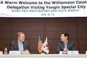 (포탈뉴스통신) 이상일 용인특례시장이 13일 용인의 자매도시인 미국 텍사스주 윌리엄슨카운티의 대표단과 만나 양 도시의 발전을 위한 협력 방안을 논의했다. 이날 시청 접견실에서 이 시장은 스티븐 스넬(Steven Snell) 윌리엄슨카운티장과 러스 볼즈(Russ Boles) 윌리엄슨카운티 커미셔너, 데이브 포터(Dave Porter) 윌리엄슨카운티 경제개발파트너십 전무이사를 만나 경제와 산업, 교육 등 다양한 분야에 대해 의견을 나눴다. 이날 이상일 시장을 만난 스티븐 스넬 윌리엄슨카운티장은 전임자인 빌 그래벨(Bill Gravell) 윌리엄슨카운티장에 이어 지난 4월 신임 윌리엄슨카운티장으로 취임했다. 이상일 시장은 “양 도시는 도시 이름을 붙인 명예도로명을 부여하면서 우정을 쌓고, 교류협력을 활발하게 하고 있다”며 “윌리엄슨카운티 대표단과 텍사스 주립대학교 관계자들이 용인에 있는 단국대학교 관계자를 만나 협력관계 구축에 대한 논의를 진행하는 것으로 알고 있는 데 양 도시에 있는 대학이 교류하는 것은 매우 뜻 깊은 일”이라고 말했다. 이 시장은 “윌리엄슨카운티에는 첨단산업 관련 기업들의 입주가 이어