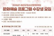 (포탈뉴스통신) 충북 괴산군청소년문화의집이 청소년들의 창의적 역량과 전인적 성장을 지원하기 위한 ‘2026년 문화예술 프로그램’ 수강생을 모집한다고 20일 밝혔다. 이번 프로그램은 청소년들이 문화·예술·체육·학습 분야의 다양한 활동을 경험하며 자기표현 능력과 정서적 안정, 건강한 여가문화를 형성할 수 있도록 기획됐다. 강좌는 예술, 체육, 학습 분야 등 총 10개 과정으로 구성됐다. 세부 프로그램으로는 △드럼 △바이올린 △발레 △댄스 등 예술 강좌와 △요리 △포켓볼 △탁구 등 체험·체육 강좌, 그리고 △생명과학 △주산 △기초학습&보드게임 등으로 구성돼 청소년들의 선택 폭을 넓혔다. 특히 ‘기초학습&보드게임’ 프로그램은 대청교(대학생 청소년 교육 멘토링)와 함께 운영된다. 국어·수학·영어 등 교과 중심 학습지도와 보드게임을 병행하고 정서 멘토링 활동도 함께 진행해 학습 흥미와 자신감을 높일 계획이다. 수강 신청은 오는 21일부터 3월 6일까지며 괴산군청소년문화의집 홈페이지를 통해 선착순으로 진행된다. 박은순 가족행복과장은 “이번 문화예술 프로그램을 통해 청소년들이