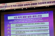(포탈뉴스통신) 안산시는 건전한 공직 가치관 확립과 상호 존중하는 직장문화 조성을 위해 오는 24일까지 총 5회에 걸쳐 전 직원을 대상으로 ‘2026년 4대 폭력 예방 교육’을 실시한다고 16일 밝혔다. 이번 교육은 안산시 공직자 3천여 명을 비롯해 공직유관단체 직원과 시립예술단까지 대상을 확대해 공직사회 전반의 참여 속에 진행된다. 강연은 서울경찰청 수사 경력을 가진 박하연 전문 강사(한국양성평등교육진흥원 위촉)가 맡았다. 강연에서는 디지털 성범죄와 스토킹, 교제 폭력 등 주요 범죄사례를 중심으로 공공기관의 대응 절차와 2차 피해 예방을 위한 공직자의 역할 등을 설명했다. 특히 지난 15일 교육 시작에 앞서 허남석 안산시 부시장을 비롯해 전국공무원노동조합 안산지부장, 안산시청공무원노동조합 위원장, 공공연대노동조합 안산지부장, 안산시환경공무직노동조합 위원장이 함께 ‘4대 폭력 예방 실천 결의 선언’을 진행했다. 노사가 함께 폭력 근절과 건강한 조직문화 조성 의지를 다졌다. 이민근 안산시장은 “폭력 예방은 공직사회 신뢰를 유지하기 위한 기본 요소”라며 “지속적인 교육과 제도 운영을 통해 상호 존중하는