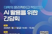 (포탈뉴스통신) 교육부와 한국대학교육협의회(회장 양오봉)는 2월 27일, 서울역 삼경교육센터에서 ‘대학 인공지능(AI) 활용 윤리 지침(가이드라인) 마련을 위한 간담회’를 개최한다. 최근 인공지능(AI) 기술의 보편화로 대학에서의 인공지능(AI) 활용도가 높아졌으나, 인공지능(AI)의 무분별한 활용에 따른 부작용에 대한 우려도 깊어진 상황이다. 이에 교육부는 각 대학이 실정에 맞는 자체 지침(가이드라인) 등을 수립할 때 기초자료로 활용할 수 있도록, 전문가와 대학 관계자 등의 의견 수렴을 거쳐 「대학 인공지능(AI) 활용 윤리 지침(가이드라인)」을 마련할 예정이다. 이와 관련해 마련된 이번 간담회는 ‘대학의 윤리적이고 책임있는 인공지능(AI) 활용’을 주제로 운영된다. 대학 관계자와 관련 전문가들이 모여, 인공지능(AI) 확산에 따른 학사 운영의 공정성 확보와 책임감 있게 인공지능(AI)을 활용하는 교육환경 조성의 필요성에 대해 논의한다. 더불어, 「대학 인공지능(AI) 활용 윤리 지침(가이드라인)」의 실효성 확보를 위한 방안을 모색한다. 먼저, 김자미 교수(고려대학교)는 국내외 대학의 인공지능(AI) 활용 윤