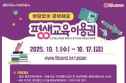 (포탈뉴스통신) 울산시가 시민들의 평생학습 접근성을 높이기 위해 평생교육이용권 3차 접수에 나선다. 울산시는 ‘2025년 평생교육이용권’ 지원사업의 3차 신청 접수를 10월 1일부터 17일까지 평생교육이용권 누리집을 통해 실시한다고 밝혔다. 울산시에 따르면 지난 4월, 5월에 진행한 1·2차 접수의 경우 저소득층 성인과 중장년층(40세~64세), 노인(65세 이상), 디지털 관련 수강 희망자(30세 이상)를 대상으로 지원했으며, 높은 경쟁률을 기록하는 등 시민들의 관심이 높았다. 이에 이번 3차 접수에서도 ▲저소득층 성인(19세 이상 기초생활수급자․차상위계층) ▲지역특화 대상자(중장년층(40세~64세)) ▲노인(65세 이상) ▲디지털 관련 평생교육 수강 희망자(30세 이상)를 대상으로 1·2차 접수 시 기회를 놓친 시민에게 추가 지원한다. 신청 기한은 오는 10월 1일부터 17일까지이며 평생교육이용권 누리집을 통해 접수한다. 울산시는 10월 중 320여 명을 최종 선정해 1인당 35만 원 상당의 평생교육이용권(포인트)을 지급할 예정이다. 해당 이용권은 엔에이치(NH)농협카드