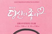 (포탈뉴스통신) (재)김해문화관광재단 김해서부문화센터는 경남문화예술진흥원이 주관하는 ‘2026 공연장상주단체육성지원사업’에 최종 선정되며, 지난해에 이어 2년 연속 선정되는 성과를 거뒀다. 사업의 시작을 알리는 첫 무대는 오는 4월 9일과 10일 오후 7시 30분, 상주단체 극단 이루마의 음악극 '당신이 좋아'가 장식한다. 음악극 '당신이 좋아'는 2020년 경남 공연장 상주단체 사업의 일환으로 제작되어 초연된 이후, 제41회 경남연극제 단체 금상을 수상하며 작품성을 인정받았다. 또한 2024년 ‘리;바운드’ 축제 공연유통사업에 (재)김해문화관광재단의 추천으로 김해 예술단체 최초로 선정됐으며, 같은 해 10월 19일 청와대 가을음악회에서 공연을 선보인 바 있다. '당신이 좋아'는 삭막한 현대 사회를 유쾌하게 풍자하고, 신중년 황혼 커플의 운명적인 사랑을 통해 ‘사랑’의 진정한 의미를 되짚는 작품이다. 특히 배우와 관객이 함께 춤추고 노래하는 참여형 연극으로, 그 시절 음악과 이야기를 통해 과거와 현재를 잇는다. 슬픔과 미련마저 추억으로 남기는 감성으로 관객에게 깊은 공감과