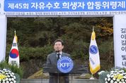 (포탈뉴스통신) 이상일 용인특례시장은 6일 처인구 양지면 대대리 ‘자유수호희생자위령탑’에서 열린 제45회 자유수호희생자 합동위령제에 참석해 희생자들을 추모했다. 이날 행사엔 이상일 시장을 비롯한 박창무 한국자유총연맹 용인시지회장 등 지역 내 단체 관계자와 시민 50여 명이 참석했다. 행사는 희생자를 기리기 위한 추도 의식, 추념사·추도사, 조가 연주와 제창, 진혼무, 헌화 순으로 진행됐다. 이상일 시장은 추도사에서 “고대부터 자유는 인간에게 가장 중요한 가치로 자유를 얻지 못하면 우리는 평등해질 수가 없다”며 “선배 세대들이 목숨을 바치면서 자유를 지켜낸 모습만 봐도 자유는 그냥 얻어진 것이 아니다”라고 강조했다. 이 시장은 “우리가 매년 위령제를 지내는 것은 1990년 9월 21일 희생당하신 분들의 고귀한 넋을 우리가 면면히 잘 이어받아 선배 세대가 소중하게 지킨 이 나라를 더욱더 발전시켜 후배 세대들에게 물려주기 위함이라고 생각한다”며 “호국영령의 넋이 하늘나라에서도 늘 평안을 누리시길 기원드린다”고 했다. 자유수호희생자위령탑은 1950년 9월 21일 용인·화성·수원 등지에서 끌려와 양지면 대대