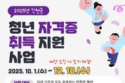 (포탈뉴스통신) 충북 진천군 청년센터는 10월부터 청년들의 직무 역량 강화와 진로 설계를 돕고 경제적 부담을 완화하기 위해 ‘청년 자격증 취득 지원사업’을 본격 시행한다고 9일 밝혔다. 이번 사업은 어학 20종, 한국사능력검정시험(기본·심화), 국가공인자격증 등 다양한 시험의 응시료를 지원하며, 자격증별 최대 10만 원까지 지원한다. 단, 운전면허시험은 지원 대상에서 제외되며, 기타 자세한 내용과 신청 방법은 진천군 청년센터 공식 블로그와 SNS(인스타) 채널을 통해 확인할 수 있다. 군 청년센터는 이번 사업을 통해 지역 청년들이 필요한 자격증을 취득하는 데 실질적인 도움을 주고, 지역 내 청년들의 진로 탐색과 경쟁력을 강화할 수 있을 것으로 기대하고 있다. 군 청년센터 관계자는 “청년들이 자격증 취득 과정에서 겪는 비용 부담을 줄여 안정적으로 미래를 준비할 수 있도록 지원하겠다”며 “앞으로도 청년들의 성장을 돕는 다양한 지원 정책을 지속적으로 추진해 나가겠다”고 말했다. [뉴스출처 : 충북도진천군]
