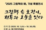 (포탈뉴스통신) 수원시 매여울도서관은 10월 30일까지 1층 어린이자료실에서 ‘2025 그림책의 해 기념 특별전’을 연다. 세대를 아우르는 상징적 존재인 ‘호랑이’를 주제로 한 이번 특별전은 ▲전래동화 속 호랑이(전래동화 그림책 전시) ▲현대 그림책 속 호랑이(창작 그림책 전시) ▲나만의 호랑이(시민 참여 코너: 색칠, 감상평) ▲우리 곁의 호랑이(호랑이 관련 굿즈) 등 네 가지 주제로 구성됐다. 시민이 완성한 호랑이 색칠 작품은 수원시도서관 인스타그램 이벤트와 연계해 공개한다. 참여자 중 추첨을 통해 슈링클스 키링 만들기 프로그램에 참여할 기회도 제공한다. 매여울도서관 관계자는 “호랑이는 옛이야기의 주인공이자 오늘날에도 살아 있는 한국의 상징”이라며 “시민들이 호랑이 그림책 속 이야기를 나누고, 세대를 잇는 그림책의 가치를 새롭게 발견하는 계기가 되길 바란다”고 말했다. [뉴스출처 : 경기도 수원시]