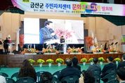 (포탈뉴스통신) 금산군주민자치협의회(회장 권문석)는 11월 28일 금산종합체육관에서 제12회 금산군 주민자치센터 문화프로그램 발표회를 개최했다. 이날 박범인 금산군수를 비롯해 주민자치위원, 군민 등 400여 명이 참여한 가운데 난타, 줌바댄스, 노래, 우리춤, 드럼밴드, 댄스, 합주단 등 다채로운 문화프로그램 발표가 무대를 채웠다. 또한, 주민자치 프로그램 체험, 활동내역 및 작품 전시를 진행한 읍면별 부스도 큰 호응을 얻었다. 같은 날 주민자치 활성화를 위해 노력한 공으로 유공자 18명이 군수표창과 금산군의회 의장표창을 받았다. 문화프로그램 발표회가 종료된 후에는 읍면주민자치위원간의 화합과 교류의 장을 마련하기 위해 올해 처음으로 주민자치위원 화합대회가 열려 고무신 던지기 등 미니게임 등이 진행됐으며 주민자치위원들의 선의의 경쟁으로 분위기가 후끈 달아올랐다. 권문석 금산군주민자치협의회장은 “제12회 금산군 주민자치센터 문화프로그램 발표회가 많은 관심과 격려 속에 성공적으로 마무리됐다”며 “참여해 주신 발표팀과 읍면 주민자치위원분들께 감사드린다”고 말했다. 박범인 금산군수는