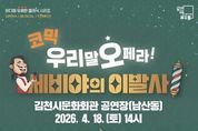 (포탈뉴스통신) 김천시 문화예술회관은 온 가족이 함께 웃으며 즐길 수 있는 우리말 코믹 오페라 '세비야의 이발사'를 오는 4월 18일, 김천시문화회관(남산동)에서 개최한다. 이번 공연은 예술지원센터의 ‘2026년 공연예술 지역유통 지원사업’으로 선정되어 국비를 지원받아 개최되며, 전석 1만 원이라는 저렴한 가격으로 제공된다. 우리말 코믹 오페라 '세비야의 이발사'는 원곡 전곡을 재치 있는 한국어로 번안하여 누구나 이해할 수 있는 가사로 재해석한 것이 특징이다. 여기에 슬랩스틱 코미디와 패러디, 현실감 있는 대사들을 더해 관객들의 몰입도를 높이고 오페라에 대한 심리적 거리감을 크게 낮췄다. 예매는 4월 3일 14시부터 티켓링크 또는 김천시문화예술회관 누리집에서 가능하며, 김천시민 30%, 김천시 다자녀가정 40% 할인 등을 받을 수 있다. 자세한 사항은 김천시 문화예술회관 누리집 공지사항을 확인하거나, 문화예술회관 사무실로 문의하면 된다. [뉴스출처 : 경상북도 김천시]