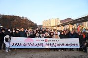 (포탈뉴스통신) 의정부시의회는 지난 1일 병오년 새해를 맞아 지역 주민들과 함께 걸으며 희망찬 2026년을 시작할 수 있도록 ‘해맞이 산책, 하천길 따라 새빛정원까지’ 신년 해맞이 행사에 참석했다. 이번 행사는 ▲호원 생활체조광장에서 출발해 ▲신의교~신곡교 중간지점 벽천분수 ▲동오역 생활체조광장 ▲경기도청 북부청사역 인근 벽천분수를 거쳐 ▲신곡새빛정원까지 이어지는 릴레이 산책 코스로 진행됐다. 해맞이 행사에는 시민들과 함께했으며, 15개 동 통장협의회가 행사 준비와 운영에 참여해 중랑천, 부용천 산책로를 걸으며 새해에도 시민들과의 공동체 의식을 함양하고자 마련됐다. 김연균 의장을 비롯한 권안나 부의장과 의정부시장, 의정부시통장협의회 등이 참석했다. 행사에 참석한 의원들은 “희망과 도약을 상징하는 붉은 말의 해를 맞아 시민들과 첫 해맞이를 함께하게 되어 더없이 기쁘다며” “올 한 해 더욱 시민들의 목소리에 귀 기울이고 함께 공감·소통하며, 의정부시의 발전을 이끄는 의정부시의회가 되도록 노력하겠다”고 전했다. [뉴스출처 : 경기도 의정부시의회]