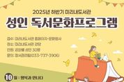 (포탈뉴스통신) 원주시 미리내도서관은 지역 시민들의 문화적 접근성을 높이기 위해 성인을 대상으로 하반기 독서문화프로그램을 운영한다. 이번 프로그램은 ▲관계로 이루어진 우리의 삶에 대해 알아보는‘행복을 위한 심리학 교실’ ▲좋은 그림과 그림값을 결정하는 요소에 대해 배우는‘그림값과 서양 예술사’ ▲재무 관리 및 재테크 투자에 대해 배우는 ‘나의 자산을 알고 세상에 투자하자’ 등 ‘자기 성찰과 역량 개발’을 주제로 한 3개 강좌로 진행된다. 박순덕 도서관장은 “하반기에도 다양한 주제의 프로그램을 통해 지역 주민들의 문화 만족도 향상을 위해 노력하겠다”라고 말했다. [뉴스출처 : 강원도 원주시]