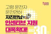 (포탈뉴스통신) 부산시는 안전이 우선되는 사람 중심의 교통안전 환경을 조성하기 위하여 고령자와 사업용 차량의 안전관리 강화에 집중하는 '맞춤형 안전대책'으로 다양한 신규사업들을 추진한다고 밝혔다. 먼저, '고령운전자·보행자의 사고 유발 요소 집중관리'를 위해 ▲고령자 운전면허 자진반납 제도개선 ▲고령보행자 사고다발지역 개선 ▲고령운전자 사고다발지역 개선 효과 분석을 한다. [고령자 운전면허 자진반납 제도개선] 2018년부터 시행 중인 고령자 운전면허 자진반납 우대제도의 실효성을 높이고, 사고발생률과 치사율이 높은 후기 연령층에 집중하고자 ▲지원 대상 나이를 기존 65세 이상에서 70세 이상으로 상향 조정한다. 또한, ▲운전면허 반납 시 지급하던 선불교통카드는 지역경제 활성화를 위해 동백전(정책지원금)으로 변경하고, ▲지원금액은 자동차 보험가입증명서, 자동차등록증 등 실제 운전자임을 증빙하는 서류를 제출하는 경우에는 30만 원을, 기존처럼 운전면허증만 반납하는 경우에는 10만 원을 지원한다. 개선된 고령자 운전면허 자진반납 제도는 1월 1일부터 바로 시행된다. * 반납 및 자세한 문의 - 주민등록 주소지 관할 읍·면·동 행정