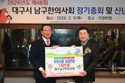(포탈뉴스통신) 대구 남구는 지난 5일 대구 남구 한의사회(회장 이재환)에서 새해를 맞아 이웃 돕기 성금 100만원을 기탁했다고 밝혔다. 대구광역시 남구 한의사회는 지난 5일 개최된 제46회 남구한의사회 정기총회 및 신년교례회에서 새해를 맞아 지역사회 내 어려운 이웃을 돕기 위해 성금 100만 원을 대구 남구청에 전달했다. 이번 성금은 경기 침체와 물가 상승 등으로 어려움을 겪고 있는 지역 저소득층을 지원하기 위한 것으로, 남구한의사회는 수년째 꾸준한 나눔 활동을 통해 지역사회와의 상생과 이웃사랑 실천에 앞장서고 있다. 이재환 남구한의사회 회장은 “다가오는 설 명절을 맞아 지역의 어려운 이웃들에게 회원들의 따뜻한 마음이 잘 전달되어, 조금이나마 힘이 되고 온정이 느껴지는 명절을 보내시길 바란다.”라고 밝혔다. 조재구 남구청장은 “매년 변함없이 지역사회를 위한 나눔을 실천해 주시는 남구한의사회에 깊이 감사드린다.”라며, “전달해 주신 성금은 꼭 필요한 이웃들에게 소중히 전달하여 실질적인 도움이 되도록 하겠다.”라고 말했다. 이날 전달된 성금은 사회복지공동모금회를 통해 관내 취약계층 지원에