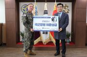(포탈뉴스통신) 충청북도교육청이 29일, 연말연시를 맞아 육군 제37보병사단에 위문금을 전달했다. 이날 윤건영 교육감은 제37보병사단 방문하여 “국방의 의무를 다하는 군장병들의 노고에 감사하고, 조금이라도 위로가 됐으면 좋겠다.”라며, “충북 교육가족은 국토방위와 국민 안전을 위해 묵묵히 헌신하는 국군장병을 항상 응원하며, 감사의 마음을 잊지 않겠다.”고 말했다. 한편, 충북교육청은 지난 24일 공군사관학교를 방문하여 장병들을 격려하고 위문금을 전달한 바 있으며, 지난 추석에도 육군종합행정학교를 비롯한 지역 내 부대를 위문 방문하는 등 국군장병들에 대한 격려를 매년 꾸준히 이어가고 있다. [뉴스출처 : 충청북도교육청]