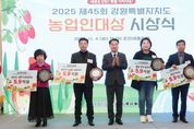 (포탈뉴스통신) 강원특별자치도는 강원일보사와 공동으로 11월 4일 오전 11시, 춘천 세종호텔에서 '2025 제45회 강원특별자치도 농업인대상 시상식'을 개최했다. 이날 행사에는 여중협 행정부지사, 박진오 강원일보사장, 김용복 강원특별자치도의회 부의장을 비롯해 도의원, 농업인대상 수상자와 가족, 농협중앙회 강원지역본부장, 도 농업인단체 총연합회장 및 회원 단체장 등 150여 명이 참석했다. 올해로 45회를 맞은 강원특별자치도 농업인대상은 1981년부터 강원특별자치도와 강원일보사가 공동 주최해온 강원 농업 분야의 최고 권위 있는 상으로, 매년 도내 우수 농업인과 농업단체를 선정해 시상하고 있으며, 2024년까지 총 300명이 수상의 영예를 안았다. 이번 시상식에서는 농업·농촌 발전에 기여한 5개 부문 수상자 5명에게 상패가 수여됐다. 부문별 수상자는 △친환경농업부문 영농조합법인 강원유기농, △수출유통부문 농업회사법인 솜씨가㈜, △축산발전부문 김진선, △미래농업육성부문 추경진, △농촌융복합산업부문 해담마을 영농조합법인이다. 아울러 농촌마을활력프로젝트 우수마을로 선정된 4개 마을에 대한 시상