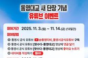 (포탈뉴스통신) 통영시는 통영의 대표 랜드마크인 통영대교의 새 단장을 기념해 시민과 관광객이 함께 참여할 수 있는 ‘유튜브 이벤트’를 14일까지 진행한다. 도심과 미륵도를 잇는 관문인 통영대교는 1998년 준공 이후 27년 만에 새롭게 단장됐다. 이번 개선사업을 통해 고(故) 전혁림 화백의 대표작 ‘풍어제’를 교량 전체에 구현, 하나의 거대한 예술작품으로 탈바꿈시키며 ‘예술의 도시 통영’의 정체성을 한층 강화했다. 이번 유튜브 이벤트는 통영대교의 새 단장을 기념해 마련된 온라인 시민 참여 행사로, 통영시 공식 유튜브 채널을 구독하고 ‘왓수다–통영대교’ 영상에 댓글과 좋아요를 남긴 뒤 네이버폼을 작성하면 누구나 참여할 수 있다. 참여자는 추첨을 통해 100명에게 GS25 모바일상품권(5천원권)을 증정하며, 당첨자는 오는 17일(월) 인스타그램 스토리 게시 및 개별문자로 안내될 예정이다. 신종덕 공보감사실장은 “통영대교는 시민의 일상과 예술이 만나는 상징적인 공간으로 거듭났다”며 “이번 이벤트를 통해 시민과 관광객이 통영대교의 새로운 변화를 함께 즐기고, 통영의 매력적인 이야기를 온라인으로