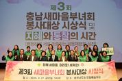 (포탈뉴스통신) 김태흠 충남도지사는 27일 도청 문예회관에서 열린 제3회 충남새마을부녀회 봉사대상 시상식에 참석, 지역사회를 위해 헌신해온 부녀회장들을 격려했다. 충남새마을회와 충남새마을부녀회가 주최·주관한 이번 행사에는 김 지사와 정광섭 도의회 부의장, 강승규 국회의원, 김정임 새마을부녀회 중앙연합회장, 박숙희 충남새마을부녀회장, 시군 새마을부녀회장 등 800여 명이 참석했다. 행사는 표창 수여, 우수사례 발표, 약속문 낭독, 기념촬영 등의 순으로 진행했다. 표창 수여에서 대상은 천영옥 논산시 채운면 새마을부녀회장이 받았다. 천 회장은 2015년부터 11년 동안 채운면 새마을부녀회장을 역임하며, 독거노인 480세대에 밑반찬을 제공하고, 부녀회원과 독거노인 간 1대 1 결연을 통해 청소와 빨래 봉사 등을 꾸준히 이어올 수 있도록 이끌어온 공로를 인정받으며 이번 영예를 안았다. 채운면 부녀회는 또 매년 120세대에 김장김치와 연탄을 지원하고, 11년 동안 헌옷을 수거·판매해 수익금 전액을 취약계층에 기부하는 등 공동체 봉사에 헌신해왔다. 우수상은 송미경 홍성군 은하면 새