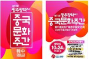 (포탈뉴스통신) 광주광역시는 24일부터 30일까지 7일간 ‘제11회 중국문화주간’ 행사를 다채롭게 진행한다. 24일 오후 5시 광주차이나센터에서 열리는 개막식에는 강기정 시장을 비롯해 구징치 주광주중국총영사, 김병내 남구청장, 박상철 호남대 총장 등이 참석해 중국문화주간 선포를 함께 축하할 예정이다. 개막식 식전 행사에서는 노영민 전 주중국대한민국 대사가 ‘글로벌 대전환의 시대, 중국은 어디로 가는가’를 주제로 특별강연을 진행해 중국의 발전방향과 세계 무역의 흐름을 짚는다. 올해로 11회째를 맞는 중국문화주간에는 중국요리대회(대상 시장상), 중국언어문화경진대회(대상 시장상), 사진공모전(대상 총영사상), 카빙전시(대상 총영사상), 사회관계망서비스(SNS) 사진 영상 콘테스트 등 다양한 프로그램이 마련됐다. 특히 올해는 CGV 상무에서 ‘차이나 무비 나잇’을 운영해 첨밀밀, 화양연화, 중경삼림, 패왕별희 등 국내에서도 큰 사랑을 받았던 중국 명작 영화를 상영한다. 국립아시아문화전당에서는 한국과 중국의 음식문화, 전통의상, 공예체험 부스를 운영하는 한중 문화체험 행사도 열린다.