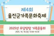 (포탈뉴스통신) 울진군은 울진군가족센터가 오는 10월 18일 오후 1시부터 평해생활체육공원 축구장에서 제4회 울진군가족문화축제‘우당탕탕 가족운동회’를 개최한다. 이번 축제는 지난해에 이어 두 번째로 열리는 가족운동회로, 온 가족이 함께 어울려 즐길 수 있는 체험과 놀이 프로그램이 준비된다. 연 만들기, 달고나 만들기, 키링 만들기 등 체험 부스를 마련해 다양한 즐길 거리를 제공하며, 가족 대항 레크리에이션, 행운권 추첨 등 푸짐한 선물이 준비되어 있어 참여 가족 모두가 특별한 추억을 만들 수 있도록 다채롭게 구성할 예정이다. 행사는 오후 1시부터 오후 4시 30분까지 운영되며 울진군민 2인 이상 가족이면 누구나 무료로 참여 가능하다. 참가 신청은 울진군가족센터 홈페이지를 통해 가능하며, 자세한 사항은 유선으로 문의하면 된다. 손병복 울진군수는“이번 축제가 세대가 함께 어울리고 소통하는 장이 되어 가족의 소중함을 다시금 느끼는 계기가 되길 바라며 군민여러분의 많은 참여를 부탁드린다”라고 말했다. [뉴스출처 : 경상북도 울진군]