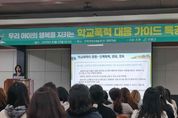 (포탈뉴스통신) 서울 은평구는 지난달 29일 은평문화예술회관 대회의실에서 학부모, 지역 주민 약 100명이 참석한 가운데 ‘우리 아이의 행복을 지키는 학교폭력 예방 및 대응 학부모 특강’을 개최했다고 밝혔다. 이번 특강은 ▲학교폭력 대응 가이드 영상 시청 ▲변호사가 들려주는 ‘엄마‧아빠가 꼭 알아야 할 학교폭력’ ▲서부경찰서의 학교폭력 지원프로그램 ▲서부교육지원청의 학교폭력 사례 및 지원프로그램으로 진행됐고 두 시간의 긴 강의에도 학부모들은 자리를 떠나지 않고 강사에게 질문하는 등 높은 관심을 보였다. 특히 국내 1호 학교폭력 전문 변호사와 서울서부경찰서 학교전담 경찰관(SPO), 서부교육지원청 장학사 등 각 분야의 전문가들이 강사로 참여해 학교폭력에 대한 학부모들의 궁금증을 풀어주고, 실제 학교폭력 사례에 바탕으로 구체적인 대처 방안을 제시했다. 특강에 참여한 한 학부모는 “학교폭력 사례를 통해 예방과 대응 방법을 알게 되어 막연한 불안감을 해소할 수 있는 뜻깊은 시간이었다”며 “앞으로도 이런 자리를 자주 마련해줬으면 좋겠다”고 소감을 밝혔다. 김미경 은평구청장은 "학생과 학부모, 지역사회가 함