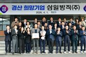 (포탈뉴스통신) 경산시는 2026년 2분기 경산 희망기업으로 삼일방직(주)을 선정하고, 1일 시청 대회의실에서 경산 희망기업 선정식을 가져 트로피와 현판을 수여했다. 진량읍에 위치한 삼일방직(주)(대표 노희찬)은 45년 이상의 업력을 보유한 섬유 제조 강소기업으로 2010년 부설 연구소(PILOT 공장)를 설립하여 신제품개발과 공정개선에 집중하며 2013년 섬유업계 최초로‘월드클래스 300 프로젝트’에 선정되는 쾌거를 이루며 지역기업으로서 탄탄한 기반을 다져왔다. 특히, 2017년에는 미국 애틀란타 소재의 중견 방적 기업인 뷸러 퀄리티얀스(BQY)를 인수하는 전략적 선택과 단계적인 설비 투자로 현지화에 성공하며 미주와 유럽 시장에 진출하는 교두보를 마련했다. 또한, 사원들의 자기 계발 교육비 지원, 학자금 지원 제도, 근로복지 기금을 운영하며 근로자의 삶의 질 향상에도 최선을 다해왔다. 그로 인해 창립 이래 단 한 번의 노사분규도 발생하지 않았으며, 노(勞)와 사(使)가 상생 협력하는 선진적인 노사 문화 정착에 앞장섰다. 노희찬 대표는 “경산 희망기업으로 선정되어 지역기업으로서 책임감이 크다”“4