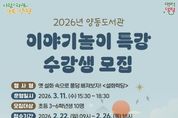 (포탈뉴스통신) 양평군은 새 학기를 맞아 양동도서관에서 초등학생을 대상으로 운영하는 ‘이야기 놀이 특강’의 수강생을 오는 22일부터 26일까지 모집한다고 밝혔다. 이번 특강은 옛 설화 속 주인공이 되어 또래와 협력해 이야기를 만들어 보는 스토리텔링 프로그램이다. 시나리오 속에서 나만의 캐릭터를 만들고 싶은 초등학교 3~6학년 학생이라면 누구나 신청할 수 있다. 강좌는 3월 11일 오후 3시 30분부터 약 3시간 동안 참여형 프로그램으로 진행되며, 장소는 양동도서관 3층 강의실이다. 전진선 양평군수는 “앞으로 양동도서관이 어린이들에게 다양한 독서문화 프로그램을 제공하고, 이번 특강이 초등학생들의 문해력 향상에 도움이 되기를 바란다”고 전했다. [뉴스출처 : 경기도 양평군]