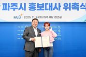 (포탈뉴스통신) 파주시는 11월 4일, 가수 김다현을 파주시 홍보대사로 추가 위촉했다고 밝혔다. 이번 위촉식은 김경일 파주시장과 김다현 씨의 가족들이 참석한 가운데 진행됐다. 김다현 씨는 앞으로 2년간 파주시의 주요 정책과 문화·관광을 홍보하고, 지역 행사 등에 적극 참여할 예정이다. 현재 한국과 일본을 오가며 활약 중인 김다현 씨는 ‘청학동 훈장’으로 알려진 김봉곤 훈장의 막내딸로, 2019년 곡 ‘꽃처녀’로 데뷔한 트로트 가수이자 국악인이다. 이후 엠비엔(MBN) 경연 프로그램 ‘보이스트롯’준우승, 티브이(TV)조선 ‘내일은 미스트롯2’3위, 엠비엔(MBN) ‘현역가왕’3위 등을 차지하며, 다양한 무대를 통해 국악적 깊이와 대중성을 함께 갖춘 가창력으로 주목받고 있다. 김경일 파주시장은 “트로트 요정 김다현 씨가 파주시의 젊고 활기찬 이미지를 알리는 데 큰 힘이 될 것으로 기대한다”라고 말했다. 앞서 파주시는 지난 17일 밴드 ‘두 번째 달’, 유튜브 창작자 ‘젼언니’, 가수 ‘김설’을 홍보대사로 위촉한 바 있다. 이번 김다현 씨의 합류로 파주시 홍보대사단은 한층 풍성해져, 음악·문화·콘텐츠 등