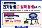 (포탈뉴스통신) 포항시는 개정된 담배사업법 시행에 따라 액상형 전자담배가 공식적인 규제 대상에 포함됐음을 알리고, 금연구역 내 흡연 금지 준수를 당부했다. 이번 법 개정으로 기존 ‘연초의 잎’을 원료로 한 제품으로 한정됐던 담배의 정의가 ‘연초 또는 니코틴’을 원료로 제조된 제품까지 확대됐다. 이에 따라 액상형 전자담배도 일반 담배와 동일하게 금연구역에서 사용이 금지된다. 오는 24일부터는 모든 금연구역에서 궐련뿐 아니라 궐련형·액상형 전자담배 등 모든 종류의 담배 사용이 전면 금지되며, 위반 시 ‘국민건강증진법’ 및 지자체 관련 조례에 따라 과태료가 부과된다. 포항시 남·북구보건소는 제도 시행 초기 시민 혼란을 줄이기 위해 오는 24일부터 5월 15일까지 3주간 집중 홍보와 단속을 병행할 계획이다. 이 기간 동안 금연구역 내 전자담배 사용 여부에 대한 점검을 강화할 방침이다. 포항시 보건소 관계자는 “액상형 전자담배도 금연구역에서 사용할 수 없는 담배 제품에 해당된다”며 “시민들이 개정된 제도를 숙지하고 준수해 주길 바란다”고 말했다. [뉴스출처 : 경상북도 포항시