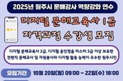(포탈뉴스통신) 원주시 평생교육원 학습관은 문해교육의 질적 향상과 교사의 전문성 강화를 위해 11월 1일부터 22일까지 ‘문해강사 보수교육 역량강좌’를 운영한다. 이번 강좌는 4주간 진행되며, 전·현직 문해강사와 자원봉사자 및 디지털 활용 능력이 우수한 원주시민 20명을 대상으로 한다. 인공지능(AI) 기반 디지털 활용 능력 강화와 ‘디지털 문해교육사 1급 자격과정’을 병행해, 교사들의 현장 적용 능력을 높일 예정이다. 주요 교육 내용은 △문해학습자 이해와 교수 설계 △AI 도구를 활용한 콘텐츠 제작 △조별 수업 시연 및 피드백 등이며, 마지막 회차에서는 희망자를 대상으로 ‘디지털 문해교육사 1급 자격시험’도 실시한다. 수강료는 무료이며, 자격증 발급비는 개인 부담이다. 모집 기간은 10월 20일 오전 9시부터 22일 오후 6시까지로, 참가 희망자는 신청서를 작성해 담당자 이메일로 제출하면 된다. 윤석재 학습관장은 “이번 보수교육 역량강좌는 문해교사의 전문성과 디지털 역량을 강화해 문해 학습자들에게 더욱 효과적인 교육을 제공할 수 있을 것”이라고 말했다. [뉴스출처 : 강원도 원주시]