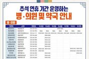 (포탈뉴스통신) 횡성군은 2025년 추석 연휴를 맞아 군민들의 건강과 안전을 보호하기 위해 10월 3일부터 10월 9일까지 7일간 특별대응기간을 설정하고, 응급진료체계를 강화한다고 30일 밝혔다. 연휴 기간 중 응급환자 진료 및 다수 사상자 발생 대비 횡성군보건소에 ‘응급진료대책 상황실’을 설치하고 당번 의료기관 및 약국 민원 안내, 응급의료기관, 문 여는 병·의원 및 약국 운영현황 점검 및 일일보고, 대규모 재난 발생 시 신속한 응급진료체계를 위한 비상연락 유지 등의 임무를 수행한다. 또한, 추석 당일인 10월 6일에는 횡성군보건소에서 오전 9시부터 오후 6시까지 일반진료를 실시하여 군민들의 의료서비스 불편을 최소화할 방침이다. 문 여는 병·의원 및 약국 현황을 확인하는 방법은 다음과 같다. - 전화 문의: 국번 없이 119 또는 129 또는 120 - 어플리케이션 사용: ‘응급똑똑’ 검색 - 인터넷 검색: ‘응급의료포털 E-Gen’ 검색 - 홈페이지 방문: 횡성군청 공식 홈페이지 김영대 횡성군보건소장은 “추석 연휴 기간 응급진료체계 구축을 통해