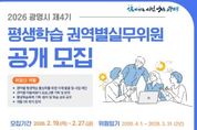 (포탈뉴스통신) 광명시가 시민 주도의 생활권 중심 평생학습 정책을 강화하기 위해 ‘제4기 평생학습 권역별실무위원회’ 신규 위원 100명을 공개 모집한다. 평생학습 권역별실무위원회는 마을 단위의 학습 의제를 발굴하고 현장 맞춤형 프로그램을 기획·운영하는 민관 협력 기구다. 위원회는 ▲으뜸터(광명1~3동) ▲다울마을(광명4~7동) ▲철산지기(철산1~4동) ▲하안처럼(하안1~4동) ▲예터지기(소하·일직·학온동) 등 5개 권역으로 구성된다. 지원 자격은 광명시에 주민등록이 되어 있는 만 19세 이상 시민이라면 누구나 가능하며, 해당 권역 소재 사업장이나 기관·단체 근무자도 신청할 수 있다. 선발된 위원은 4월 1일부터 2년간 ▲마을 평생학습 의제 발굴 및 사업 제안 ▲마을배움터 프로그램 기획 및 운영 ▲평생학습축제 기획·참여 등 지역 학습 생태계 조성을 위한 핵심 역할을 수행하게 된다. 모집 기간은 오는 2월 19일부터 2월 27일까지다. 접수는 이메일 또는 광명시 평생학습원 방문을 통해 가능하다. 시는 3월 중 서류심사와 면접을 거쳐 최종 위원을 선발하고, 3월 말 위촉식을 진행