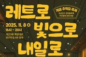 (포탈뉴스통신) (재)부산진문화재단은 부산진구 개금3동 ‘개금 추억길’에서 11월 8일 오후 4시에서 8시까지 골목의 기억과 사람들의 이야기가 어우러지는 '부산진구 온마을축제' 개금 추억길 축제 ‘레트로, 내일로, 빛으로’ 행사를 개최한다고 밝혔다. 이번 행사는 부산진문화재단이 주최하고 지역주민들로 구성된 주민기획단이 함께 준비하여 더욱 의미가 깊다. 개금 추억길은 과거 철길이 지나던 자리로, 오랜시간 지역의 역사와 생활의 흔적이 남아 있는 골목이다. 이번 축제는 그 시절의 정취를 되살리며 ‘추억의 길을 내일의 길로 잇는다’라는 뜻을 담아, 과거의 추억을 현재의 문화로 이어가는 시간을 마련한다. 이번 행사에는 체험·사진전, 골목놀이, 버스킹, 먹거리부스 등 다양한 프로그램이 진행된다. 또한, 풍선아트, 소원등 만들기, 손난로 만들기 등 세대를 잇는 체험프로그램과 추억의 골목놀이가 마련돼 남녀노소 함께 즐길 수 있다. 자세한 안내는 부산진문화재단 홈페이지 ‘문화참여’게시판에서 확인할 수 있다. 기타 문의사항은 예술지원팀으로 하면 된다. [뉴스출처 : 부산시진구