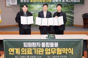 (포탈뉴스통신) 담양군은 20일 군청 면앙정실에서 관내 2개 의료기관과 ‘퇴원환자 통합돌봄 연계 의료기관 업무협약(MOU)’을 체결했다. 이번 협약은 환자의 재입원을 방지하고, 어르신들이 평소 살던 곳에서 건강하게 노후를 보낼 수 있도록 지역사회 돌봄 기반을 구축하는 데 목적이 있다. 협약에는 담양사랑병원과 나눔내과의원이 참여했다. 각 병원 담당자는 퇴원 전 환자의 건강 상태와 돌봄 필요도를 파악해 군과 연계하는 역할을 맡는다. 군은 이를 바탕으로 퇴원 환자를 위한 원스톱 통합돌봄 연계 시스템을 운영할 계획으로. 환자의 필요도에 따라 가사·식사 지원 등 일상생활 서비스부터 문턱 제거, 난간대 설치와 같은 주거환경 개선까지 맞춤형 서비스를 통합 지원한다. 군 관계자는 는 "내 집에서 안전하게 생활할 수 있도록 의료기관과 협력해 단절 없는 돌봄 체계를 구축해 나가겠다.”고 밝혔다. [뉴스출처 : 전라남도 담양군]