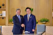 (포탈뉴스통신) 이재명 대통령은 27일 말레이시아 '안와르 이브라힘(Anwar Ibrahim)' 말레이시아 총리와 첫 정상회담을 가졌다. 이 대통령은 취임 후 첫 아세안 국가 방문지로 올해 아세안 의장국이자 오랜 우호국인 말레이시아를 방문해 매우 뜻깊다고 말했고, 안와르 총리는 이 대통령이 APEC 정상회의 준비로 분주한 가운데 말레이시아를 방문한 데 대해 사의를 표했다. 안와르 총리는 이어 이 대통령의 이번 말레이시아 방문이 한-말레이시아 관계와 한-아세안 관계가 한 차원 도약하는 중요한 동력을 제공할 것이라고 평가했다. 양 정상은 이번 정상회담을 통해 한국과 말레이시아간 FTA 협상이 타결된 것을 환영하고, 이를 기반으로 역내 핵심 경제협력국으로 양국 간 교역과 투자가 보다 확대됨은 물론, 디지털, AI 등 전략산업 분야에서 협력이 보다 가속화될 것으로 기대했다. 안와르 총리는 “말레이시아의 국방 역량 강화에 있어 한국은 신뢰할 수 있는중요한 파트너”라면서 금번 방산 MOU 체결을 계기로 한국과의 방산 분야 협력 강화를 기대한다고 밝혔다. 양 정상은 양국이 방산을 비롯해 스마트 인프라, 에너지 전환 등 미래지향적 분야에서도 협력 잠재력이 크다는 데 공감하