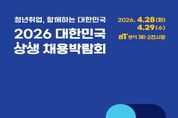 (포탈뉴스통신) 고용노동부는 관계부처 및 한국경제인협회 등 경제단체와 공동으로 오는 4월 28일과 29일, 서울 양재 aT센터에서'2026 대한민국 상생 채용박람회'를 개최한다. 이번 박람회는 청년 고용시장에 활력을 불어넣기 위해 정부와 민간이 공동 개최하는 행사로서, 대기업*의 협력사, 중견·중소기업·벤처스타트업, 글로벌 기업 등 약 700개 기업이 온·오프라인으로 참여할 계획이다. 오프라인 박람회에 앞서 구직 청년의 접근성을 높이고 기업의 인재채용을 지원하기 위해 3월 19일(목) 박람회 홈페이지를 오픈한다. 해당 사이트에서는 ▲온라인 채용관, ▲오프라인 박람회 참가 신청, ▲오프라인 박람회 면접·상담 예약, ▲사전 특강 신청, ▲취업선배와의 1:1 커피챗 예약 등이 가능하다. 온라인 채용관은 채용 플랫폼인 사람인을 통해 7월까지 운영을 이어간다. 4월 28일(화)~29일(수) 현장에서는 ▲기업 채용상담, ▲디지털·신기술 인재양성 프로그램 상담, ▲집중면접(현장 면접, 퍼스널컬러 진단, 정장 대여, 헤어·메이크업 지원), ▲취업선배와의 1:1 커피챗 등이 운영될 예정이다. 채용박람회 참가비는 무