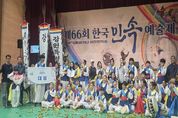 (포탈뉴스통신) 강릉농악보존회가 9월 28일 충북 영동군에서 열린 ‘제66회 한국민속예술제’ 청소년부 경연대회에서 강원특별자치도 대표로 출전하여 대상인 대통령상 수상의 영예를 안았다. 이번 경연에는 강릉시 관내 초중고교 학생 44명(초 34명, 중 9명, 고 2명)이 출연했으며, 경연장에 학부모 응원단 및 보존회 회원의 뜨거운 응원으로 예술제에 열기를 더했다. 학생들은 지난 7월부터 약 두 달여 간 무더위와 가뭄이라는 강릉의 어려운 상황 속에서도 굵은 땀방울을 흘리며 꾸준히 연습하며 경연을 준비했고, 그 결과 1위를 차지하여 대통령상 수상이라는 값진 성과를 거두었다. 이날 경연에서는 강릉농악의 대표적인 “농사풀이농악”을 선보였다. 이 농악은 과거 농사과정을 몸짓, 손짓으로 표현한 것이 가장 큰 특징으로 소, 볏짚 등 농사 과정의 다양한 소재들을 직접 몸으로 표현하여 하나의 연극이나 마임을 보는듯한 재미를 느낄 수 있다. 이번 경연은 임영민속연구회의 김남일 박사가 총 연출을 맡고, 이용신 전 서울노원구립예술단장이 고증을 담당해 완성도를 높였다. 한편, 올해 한국민속예술제는 문화체육관광부와 충청북도 및