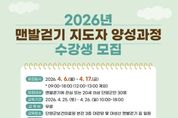 (포탈뉴스통신) 단양군보건의료원이 군민 건강증진과 걷기문화 확산을 위한 ‘2026년 맨발걷기 지도자 양성과정’ 수강생을 모집한다. 이번 과정은 맨발걷기에 대한 올바른 이해와 실천 방법을 익히고, 지역 내 건강리더를 양성하기 위해 마련됐다. 최근 자연 친화적 건강활동으로 주목받고 있는 맨발걷기를 보다 안전하고 체계적으로 배울 수 있는 기회가 될 것으로 기대된다. 모집 기간은 오는 17일까지이며, 모집 인원은 맨발걷기에 관심 있는 20세 이상 단양군민 30명이다. 교육은 4월 25일부터 26일까지 이틀간 오전 10시부터 오후 6시까지 진행되며, 교육 장소는 군보건의료원 본관 3층 대강당과 대성산 맨발걷기 길 일원이다. 접수는 군보건의료원 통합건강증진실에 방문하거나 전화로 신청하면 된다. 보건의료원은 이번 교육을 통해 군민들이 맨발걷기의 효과와 올바른 실천 방법을 익히고, 일상 속 건강생활을 주도적으로 실천할 수 있는 기반이 마련될 것으로 기대하고 있다. 군 보건의료원 관계자는 “맨발걷기는 누구나 일상에서 쉽게 실천할 수 있는 건강활동이지만 올바른 방법과 주의사항을