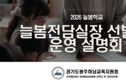 (포탈뉴스통신) 경기도광주하남교육지원청은 11월 6일, 관내 초등학교 교원을 대상으로‘2026 늘봄전담실장 선발 및 운영 설명회’를 온라인 화상회의 방식으로 개최했다. 이번 설명회는 늘봄전담실장 제도에 대한 이해를 높이고, 현장 중심의 정책 추진 방향을 공유하기 위해 마련됐다. 설명회에서는 △2026년 늘봄전담실장 임용후보자 선발 공개전형 시행 요강 △늘봄학교 정책 방향 및 추진 현황 △늘봄전담실장의 주요 직무와 역할 △거점형 늘봄센터 운영 체계 등 실질적인 내용을 중심으로 안내가 이루어졌다. 특히 1기 늘봄전담실장이 직접 참여해 학교별 운영 사례와 경험을 공유함으로써, 참여 교원들이 현장의 실제 운영 방식과 역할 수행의 구체적인 모습을 이해할 수 있는 뜻깊은 시간이 됐다. 현재 광주하남교육지원청 관내에는 총 17명의 늘봄전담실장이 49개 학교의 늘봄학교 운영을 지원하고 있으며, 내년에는 2기 늘봄전담실장 추가 선발을 통해 학교별 맞춤형 지원 체계를 한층 강화할 예정이다. 오성애 교육장은 “이번 설명회가 늘봄전담실장의 전문성과 현장 지원 역할을 널리 알리는 계기가 되길 바란다”며, “학교 현장에서
