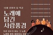 (포탈뉴스통신) 부산광역시립반송도서관(관장 송애경)은 오는 30일 도서관 청소년자기주도학습실에서 지역주민 30명을 대상으로 인문학 특강 ‘노래에 담긴 사람풍경’을 운영한다. 이번 프로그램은 10월 문화의 달을 맞아 지역주민들에게 인문학의 매력을 알리기 위해 마련했다. 특강은 우리에게 익숙한 가요와 팝송을 함께 듣고 부산대학교 곽한영 교수가 노래가 담은 의미, 만들어진 배경, 아티스트의 인생사 등 흥미로운 이야기를 들려주는 방식으로 진행한다. 참가 희망자는 10월 29일까지 반송도서관 홈페이지를 통해 신청하면 된다. 송애경 반송도서관장은 “이번 프로그램은 참가자들이 누구나 즐길 수 있는 노래와 함께 인문학의 즐거움을 배워볼 수 있는 좋은 기회가 될 것”이라고 말했다. [뉴스출처 : 부산광역시립반송도서관]