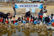 (포탈뉴스통신) 경상남도 수산자원연구소 민물고기연구센터는 3월 12일 산청군 경호강에서 내수면 생태계 자원 회복과 어업인 소득 증대를 위해 은어 어린고기 6만 마리를 방류했다고 밝혔다. 이날 방류 행사에는 민물고기연구센터와 산청군 관계자, 어업인, 지역 주민, 학생 등 80여 명이 참여해 경호강 생태계 보전의 의미를 함께했다. 연구센터는 오는 3월 24일까지 산청군 경호강 6만 마리를 비롯해 하동군 섬진강 2만 마리, 밀양시 밀양강 2만 마리를 차례대로 방류할 계획이다. 은어는 ‘청류(淸流)의 귀공자’로 불릴 만큼 맑은 물에서 서식하는 대표적인 민물고기다. 어린 은어는 바다로 내려가 겨울을 보낸 뒤 봄에 다시 하천으로 돌아오는 양측회유성 어류로 알려져 있다. 다만 경호강은 바다와 직접 연결되지 않은 하천으로 자연적인 자원 증가가 어려워 인공 방류를 통한 자원 조성이 필요한 지역이다. 그럼에도 맑은 물과 자갈 바닥 등 은어 서식 환경이 우수해 ‘은어 낚시의 성지’로 불리고 있으며, 매년 여름이면 국내외 낚시꾼들이 찾는 대표적인 내수면 낚시 명소로 알려져 있다. 은어는 자기 영
