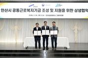 (포탈뉴스통신) 안산시는 지난 26일 안산상공회의소 그레이트홀에서 경기지방고용노동청 안산지청, 안산시 공동근로복지기금 1호 법인과 함께 ‘안산시 공동근로복지기금 조성 및 지원을 위한 상생협약’을 체결했다고 27일 밝혔다. 이번 협약은 지역 중소기업과 노동자가 함께 참여하는 공동근로복지기금 조성을 통해 대·중소기업 간 복지 격차를 완화하고, 상생과 연대의 노동환경을 조성하기 위해 마련됐다. 앞서 시는 지난해 7월 ‘안산시 공동근로복지기금 지원 조례’를 제정하고, 기초자치단체 최초로 공동근로복지기금 지원사업을 시행했다. 이는 지방정부와 중앙정부, 기금법인이 함께하는 3자 협력 모델을 구축했다는 점에서 의미가 있다. 이날 협약식에는 이민근 안산시장을 비롯해 양승철 경기지방고용노동청 안산지청장과 장현준 기금법인 대표, 참여기업 관계자 등 100여 명이 참석한 가운데 공동근로복지기금 사업 출범을 기념하고 상생 협력 의지를 다졌다. 협약에 따라 안산시는 공동근로복지기금 조성 및 운영을 위한 행정·재정적 지원을 담당하고, 경기지방고용노동청 안산지청은 ▲정책 반영과 제도 개선 ▲참여기업 확대 및 우수사례 확산 ▲