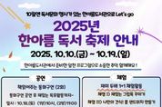 (포탈뉴스통신) 수원시청소년청년재단 수원청소년문화센터 한아름도서관은 2025. 독서의 달을 기념하여‘한아름독서축제’를 10월 10일부터 10월 19일까지 운영한다. 이번 독서축제는 △스피치 강사와 함께하는 북토크 강연 △동화구연 공연 △재미 두배 1+1 체험활동 △원화 명화 전시 △도서관 이용자 대출 이벤트 등 청소년과 지역주민이 함께 공감하며 즐길 수 있는 다양한 프로그램으로 구성했다. △스피치 강사와 함께하는 북토크 강연 △동화구연 공연은 사전접수를 통해 참여가 가능하며, 재미 두배 1+1 체험 활동은 별도 접수 없이 현장에서 선착순 참여로 가능하다. 참가비는 전액 무료이다. 사전접수는 10월 1일 수요일부터 선착순으로 모집하며, 신청 방법은 수원시청소년청년재단 홈페이지‘한아름독서축제’안내문의 QR코드로 접속하여 신청할 수 있다. 한아름도서관은 이번‘한아름독서축제’를 통해 청소년과 지역주민의 독서 문화를 장려하고 도서관 활성화를 도모하고자 한다. [뉴스출처 : 경기도 수원시]