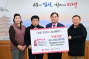 (포탈뉴스통신) 대한곡물협회 김천시지부(지부장 윤진채)에서는 26일 김천시청을 방문해 ‘희망2026 나눔캠페인’ 성금 300만 원을 기부했다. 윤진채 지부장은 "회원들의 뜻을 모아 이웃사랑과 나눔을 실천하는 ‘희망2026 나눔캠페인’에 기부할 수 있어 매우 뜻깊게 생각한다. 앞으로도 지역사회 발전에 기여할 수 있도록 노력하겠다.”라고 전했다. 배낙호 김천시장은 “윤진채 지부장님과 회원님의 따뜻한 나눔 활동에 감사드린다. 지역사회의 연대와 나눔이 김천시가 지속적인 발전을 이어가는 원동력이 된다.”라고 말했다. 대한곡물협회는 양곡을 도정하는 사업자와 양곡을 보관하는 사업자들을 대표하는 비영리 사단법인으로, 김천시지부는 10명의 회원으로 운영되고 있다. [뉴스출처 : 경상북도 김천시]