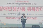 (포탈뉴스통신) 서울특별시의회 보건복지위원회 김영옥 위원장(국민의힘, 광진3)은 9월 25일부터 26일까지 양일간 반포한강공원 달빛광장에서 개최되는 『2025년 제4회 장애인직업재활의 날 기념 행복장터』에 참석해 장애인과 비장애인이 함께하는 화합의 장을 축하했다. 이번 행복장터는 “착한소비! 행복 업(UP)! 희망 업(UP)!”을 주제로, 서울시 관내 30여 개 장애인직업재활시설이 직접 생산한 가공식품, 생활용품, 사무용품 등을 전시·판매했다. 또 도자기컵 만들기, 나만의 티셔츠 만들기, 스티커 인쇄 체험 등 다양한 부스가 운영돼 시민들이 장애인생산품의 가치를 직접 느끼고 이해할 수 있는 기회가 제공됐다. 특히 실로암시각장애인복지관 드리미예술단과 아마추어 버스킹 팀 등이 참여한 문화예술 공연은 장애인과 비장애인이 함께 즐기는 축제 분위기를 더하며 의미를 더했다. 김영옥 위원장은 축사를 통해 “행복장터는 장애인생산품을 알리고 시민들이 ‘착한소비’를 실천하는 동시에, 장애인과 비장애인이 서로를 이해하며 어울리는 뜻깊은 자리”라며 “이곳에서의 소비는 단순한 구매를 넘어 장애인의 일자리를 지키고 자립을 돕는 소중한 행