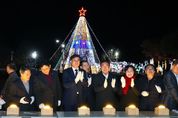 (포탈뉴스통신) 함양군은 12월 1일 오후 5시, 문화예술회관 소공연장에서 크리스마스트리 점등식을 개최했다. 이번 행사에는 진병영 함양군수, 김윤택 군의회의장, 김재웅 도의원, 군의원, 곽성무 기독교연합회장(옥당한사랑교회) 등을 비롯한 100여 명의 군민이 참석했다. 점등식 행사는 팬플룻, 우쿨렐레, 하모니카, 색소폰 연주, 캉구댄스 축하공연 등으로 시작해, 찬송과 기도, 성경 낭독, 특송, 설교 순으로 진행됐으며, 마지막에는 크리스마스트리를 점등하여 희망과 사랑의 메시지를 전했다. 또한 이날 행사와 함께 함양군기독교연합회는 이날 이웃돕기 성금을 기탁하며 나눔을 실천했다. 기탁된 성금은 경남사회복지공동모금회를 통해 관내 취약계층과 복지 사각지대에 있는 주민을 지원할 계획이다. 점등식에 함께한 진병영 함양군수는 “추운 겨울이지만, 크리스마스트리의 따뜻한 불빛이 군민에게 희망과 용기를 전해주길 바란다”라며, “앞으로도 군민과 함께하는 함양, 서로를 배려하는 따뜻한 지역사회를 만들어가겠다”라고 말했다. 크리스마스트리는 함양나들목 로터리, 상림 고운광장 입구, 한들로 로터리 등 3개소에 설치되