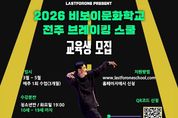 (포탈뉴스통신) 전주시와 (사)라스트포원(대표 조성국)은 오는 3월부터 5월까지 운영되는 상반기 전주브레이킹스쿨 수강생을 선착순 모집한다고 20일 밝혔다. ‘전주브레이킹스쿨’은 전북을 대표하는 비보이 전문예술법인인 (사)라스트포원과 전주시가 브레이킹 저변 확대와 관련 분야 인재 양성을 위해 함께 운영하는 비보이문화학교로, 시민 누구나 브레이킹을 쉽고 안전하게 접할 수 있도록 생활체육·문화예술 교육 기회를 무료로 제공하는 것이 특징이다. 교육 내용은 △기초 리듬트레이닝 △브레이킹 기본 동작 △신체 능력 강화 △바닥동작(플로워 댄스) 등 입문자도 따라 하기 쉽도록 구성될 예정이다. 교육 기간은 3월부터 5월까지 3개월 과정으로, 매주 1회 오후 7시 운영한다. 수업은 청소년반(10세~19세, 화요일)과 성인취미반(20세~45세, 수요일)으로 나뉘어 진행되며, 반별 모집 인원은 20명 내외다. 교육은 전주역 앞 첫마중길에 위치한 전주브레이킹스쿨 비보이연습공간(백제대로825 지하)에서 이뤄진다. 교육 신청은 라스트포원스쿨 누리집 또는 포스터 QR코드를 통해 가능하며, 모집 인원 충원 시 조기